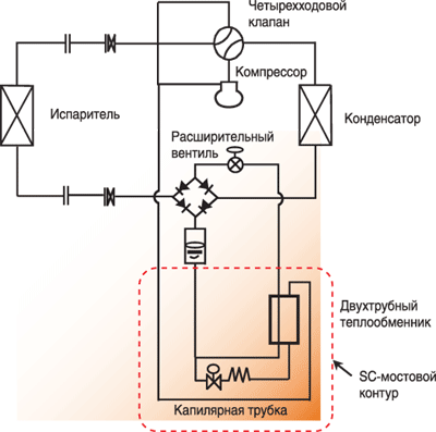 SC-мостовой контур, дополнительно снижающий температуру хладагента перед расширением