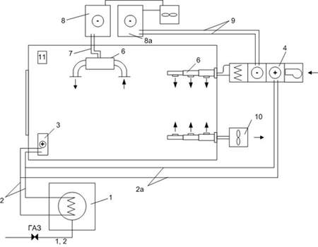 8 - газопровод, который подводится непосредственно к приточной установке.