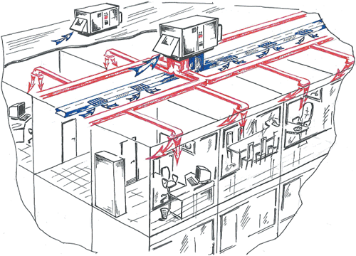 Вот что из себя, в целом, представляет классическая схема климатизации офисного здания.