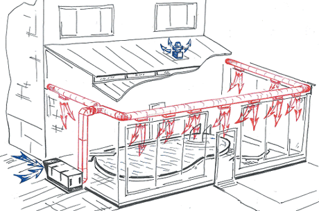 В основе нового подхода лежит воздушное отопление. Конечно, воздушное отопление известно довольно давно, но его применение было ограничено необходимостью использовать горячую воду для нагрева воздуха в приточных установках. При несовершенстве автоматики существует большая вероятность "разморозки" калорифера и потеря работоспособности всего здания на длительное время. Поэтому такие системы воздушного отопления, несмотря на ряд преимуществ, используются крайне редко.