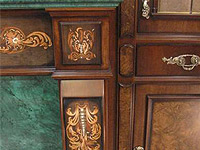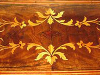 Одной из популярных техник, используемых для отделки мебели, была техника маркетри. Маркетри (от французского marqueterie) - мозаика из тонких пластинок ценных пород дерева, толщиной от 1 до 3 миллиметров, различных по цвету и текстуре, наклеивающихся на основу из простых пород дерева. В первую очередь с помощью этой техники украшались столешницы и дверцы шкафов, а, кроме того, выполнялись настенные панно, оформлялись шкатулки.