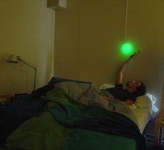 А дизайнер Хайят Бенчинаа (Hayat Benchenaa) из Нидерландов придумала будильник, ни подушкой, ни одеялом не являющийся. Тем не менее, ее "Сфера" (Sfera) способна, так сказать, физически вытащить человека из постели. Это такой светящийся шарик со встроенным радиоприёмником. Вешается над кроватью. Перед тем, как лечь спать, владелец устанавливает таймер. "Сфера" потихоньку тускнеет и гаснет. Музыка, понятно, стихает. А самое интересное начинается утром. Чтобы заставить орущее радио замолкнуть, к шарику нужно прикоснуться. Тем самым вы выиграете у "Сферы" ещё минут десять сна. Однако для будильника ваша дремота не останется незамеченной. Поэтому в следующий раз радио заиграет ещё громче, а шар поднимется выше, к нему придётся тянуться. Раз за разом Sfera будет повышаться и повышаться, пока не окажется за пределами вашей досягаемости - достигнет, наконец, потолка. Таким образом, у вас не останется выбора - нужно будет встать на кровати в полный рост. Предполагается, что в постель после этого вы уже не вернетесь.