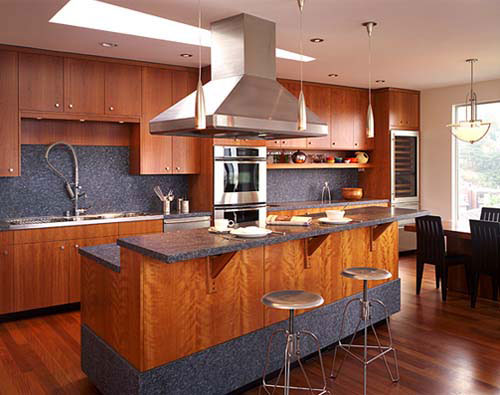Также на стоимость кухонного гарнитура влияет качество материала, из которого он изготовлен. Самый дорогой материал - натуральная древесина. Но сейчас даже самые известные производители стараются использовать массив для отделки рам и филенок фасадов, а каркасы предпочитают делать из более прочных и дешевых материалов. К другим модным и дорогим материалам относятся сталь, анодированный алюминий.