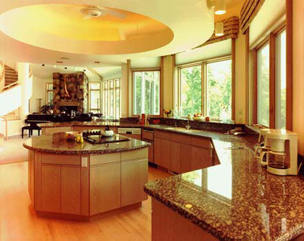 А выбирать вам придется из имеющихся пяти вариантов планировки (вряд ли вам удастся придумать в этом вопросе что-либо новое). Есть так называемый островной вариант размещения, когда в центр кухни выносится одна из зон: варочная поверхность, мойка или просто обеденный стол. Такая кухня, конечно, выглядит на рекламных проспектах наиболее эффектно, да и в жизни она достаточно удобна. Единственное требование для реализации островной планировки - большая площадь помещения.
