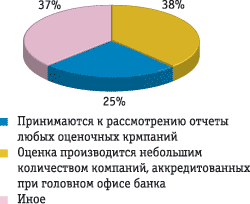 Из вышеприведенной диаграммы следует, что только 37% банков имеют постоянных партнеров по оценке. Значит, все остальные банки работают с отчетами разных компаний, о существовании которых они, возможно, раньше даже не слышали.
