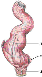 1 - ампула прямой кишки; 2 - мышца, поднимающая задний проход; 3 - наружный сжиматель заднего прохода