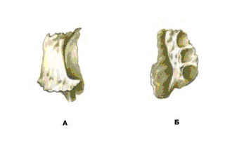 Рис. 83. Скуловая кость. А - вид снаружи; Б - вид изнутри