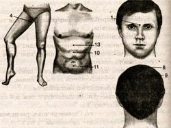 1. Точка ин-тан. Несимметричная, расположена между бровями. Воздействие производят в положении лежа на спине или сидя, голову при этом следует немного наклонить вперед.