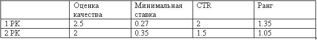 Этот пример показывает, что несмотря на то, что минимальная ставка у РК2 была больше, более высокую позицию займет объявление РК1.