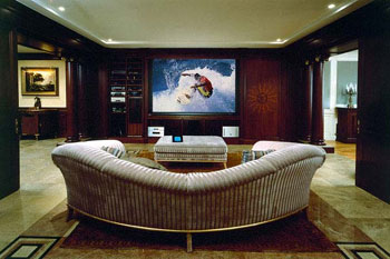 Для того, чтобы обеспечить оптимальное качество звучания и изображения, домашний кинотеатр должен размещаться в отдельной комнате, лучше, если она будет иметь прямоугольную вытянутую форму с минимальным количеством окон. Плотные шторы на окнах - обязательны. Еще лучше, если комната под домашний кинотеатр выбирается еще на стадии проектирования квартиры или дома, тогда можно продумать размещение акустической системы и встроить ее в чтобы соединительные кабели и колонки не портили интерьер.