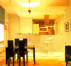 Стремление к столь модной сегодня открытости пространства в интерьере превращает кухню в часть жилого помещения, которое сегодня принято называть общественной зоной. Уберите стены между комнатами, обьедините их с коридорами и кухней, и вы получите совершенно новое помещение. Но может оказаться так, что вы скоро обнаружите, что вам совершенно не нравится в нем жить. Почему? Да потому что чисто психологически нам требуется несколько разных мест для разных занятий. Нам нужно, чтобы были отдельные, хотя бы условно ограниченные зоны, где бы мы могли спокойно сесть и пообедать, не чувствуя за спиной пустого пространства, чтобы был укромный уголок, где бы мы могли уединиться. Специалисты в один голос утверждают, что не разделенная на подзоны большая площадь очень скоро начнет угнетать. Выход один: совмещая - зонировать.