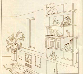 Подоконник - музыкальный центр следует планироватькак единую конструкцию. Если сзади шкафа поместить большуювыдвижную панель, то она может служить одновременноночной шторой и экраном для просмотра слайд-фильмов.Такой музыкальный центр может иметь органичное продолжениев виде стенки,встроенного шкафаили стеллажа.