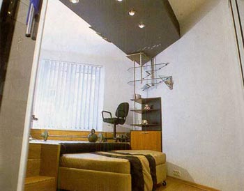 Подоконник-подиум становится настолько многофункциональнойдеталью, что его можно рассматривать и как рабочий уголок,и как спортивную площадку, и как место для отдыха. Днемпод него можно задвигать кровать, и тогда останетсядостаточно места для активной спортивной и культурнойжизни хозяина.