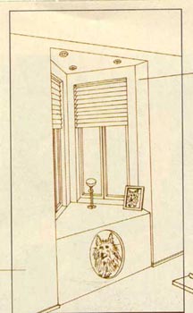 Подоконник-квартира для домашнего животного.Это вариант для, тех, кто считает четвероногих любимцевчленами семьи. Подобное решение их "жилищного вопроса"возможно при любой конфигурации подоконника. В случаес угловым окном должна сниматься передняя панель с окошком,чтобы было удобно убирать эту территорию.