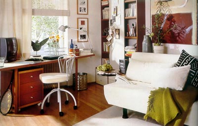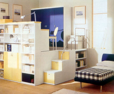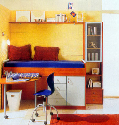 Старшеклассники и студенты — уже не дети,но еще не взрослые. Их мебель — молодежногостиля, современная и многофункциональная. Фактическикомната превращается из детской в комнату-студию иликабинет. В ней должно хватить места и для книг, и длямузыкального центра с коллекцией CD, и для конспектов,и для комнатных растений. Сама мебель по размерам, естественно,больше детской, поэтому, располагая ее на прежнем пространстве,особенно тщательно следует продумать ее расстановкуи зонирование.