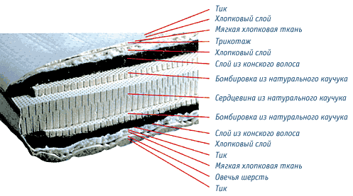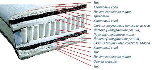 Прежде всего хочу сказать, что производители дорогой мебели стараются применять только природные компоненты. И только самым лучшим синтетическим, проверенным всевозможными медицинскими и техническими тестами, дозволено присутствовать внутри хорошей дорогой мебели. Чтобы разобраться, как все устроено, посмотрим на схемах и опять вспомним ортопедию. Как мы уже выяснили, нашим частям тела нужна разная <мягкость и упругость> для идеального комфорта. На рисунках вы видите, какие <биг маки> приходится создавать конструкторам. Слои опробовались не один десяток лет.