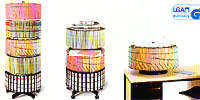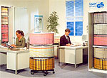 3-х этажная передвижная стойка, вмещающая до 1 500 папок, позволяет одновременную работу с документами сразу нескольких сотрудников, которымне приходится вставать для этого с рабочего места. Удобна также инастольная стойка-карусель. Она вмещает папки с суммированной толщинойоколо 2метров, при этом, чтобы найти нужный документ, Вам нужно всего лишьпокрутить карусель.