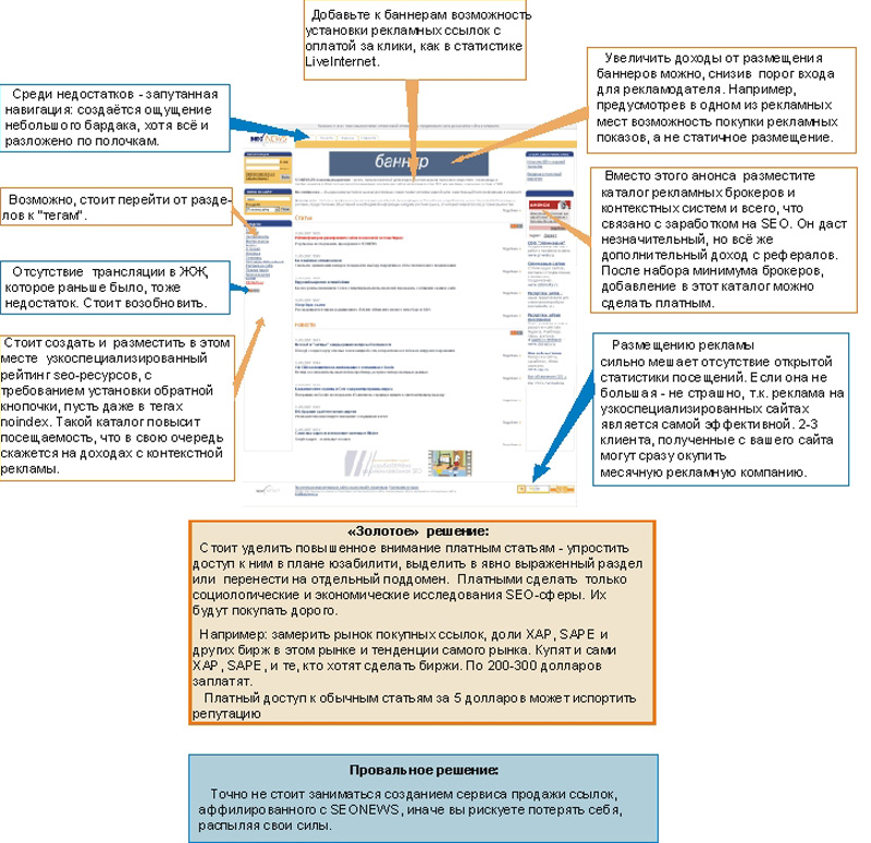 Среди достоинств данного ресурса можно выделить то, что SEONEWS практически единственное узкоспециализированное издание в этой области, если не считать несколько SEO-блогов. На сайте есть множество эксклюзивной информации, в процесс вовлечены участники рынка и у издания очень демократичная политика.