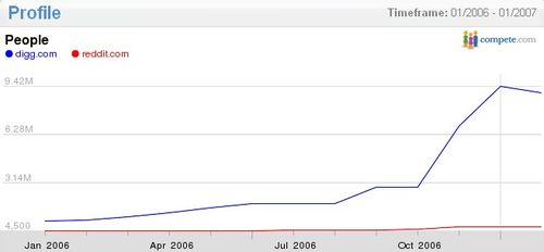 Вот с персонализированным контентом уже чуток интереснее и нечуток сложнее. Лучше, опять же, взять в пример новости, красноречивее всего будет. По сути, составляющие уравнения те же, особенно отмечаю нашу Aim – отфильтровать контент. Однако, если в Paradigm 1 применяется принцип ручного отбора, то в Paradigm 2 ставки делаются на автоматический отбор. То есть то, что сидит внутри новостного сайта (обычно внутри спрятаны пауки и боты, тут я не знаю кто) за тобой «шпиенит» некоторое время, потом все-таки втыкает, что тебе интересно и с течением времени выдает или старается выдавать тебе только «релевантный» контент. Из тех новостей, которые ты читаешь, машина пропускает стоп-слова, вытягивает ключевые слова, потом ловкость рук – и ты получаешь себе лишь то, что надо. Лидером персонализированных новостей является Reddit (теперь и в Рунете! Старейшим же таким агрегатором новостей является Findory. Однако разница в посещениях Reddit и Digg очевидна.