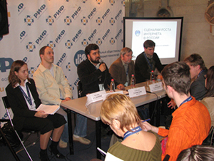 Галицкий Ефим, ведущий специалист Фонда "Общественное мнение", представил два сценария развития Интернет-аудитории: оптимистичный - когда-нибудь все жители нашей страны станут пользователями. Примерно это должно произойти уже в 2029 году, когда пользователями станет 99% населения России. И пессимистичный – к 2013 году рост интернет-аудитории достигнет своего предела – 32%, что может ознаменовать собой период стагнации.
