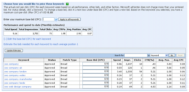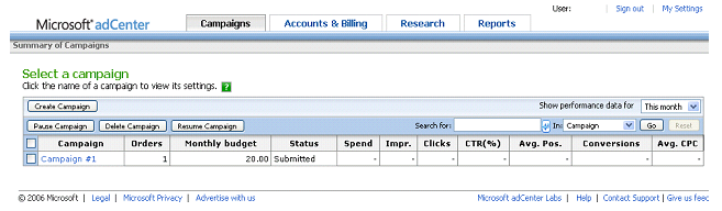 Внутренняя структура AdCenter несколько отличается от Google и Yahoo!: