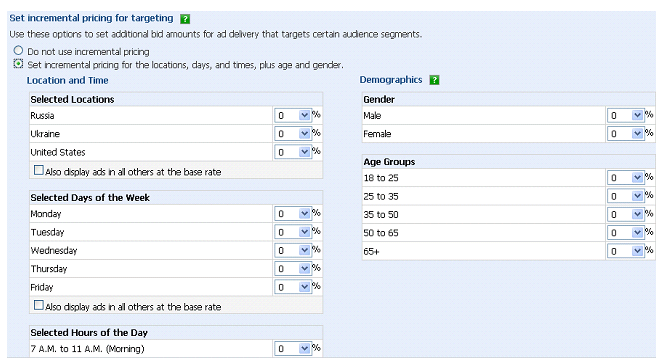 Вот и все таргетирование в Yahoo! Search Marketing…