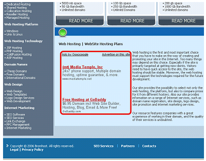 Внешний вид объявлений AdSense на тематической площадке www.bromhost.com
