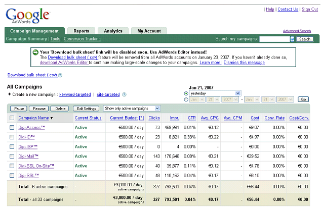 Кое-что можно выделить и из плюсов, но это лишь капля в море на фоне в целом провального продукта: наконец появилась возможность оптимизации ротации объявлений (объявления с более высоким CTR показываются чаще), при ранжировании объявлений учитывается не только ставка, но и CTR, также улучшена система отчетов.