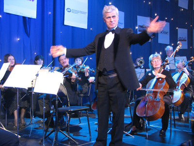 Пели Ольга и Михаил под аккомпанименет Симфонического оркестра радио и телевидения России.
