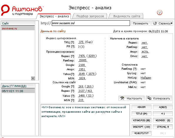 От редакции. Если бы среди оптимизаторов проводился конкурс «Компания месяца», то SEO-компанией ноября стала бы - «Ашманов и Партнеры». Провести пятую по счету конференцию “Поисковая оптимизация и продвижение сайтов в интернете”, и собрать на ней 600 человек – большое дело. Но гении должны быть совершенны во всем: и в проведении конференций и в разработке программного обеспечения для продвижения сайтов. Поэтому в течение недели аналитик Сергей Стружков экспериментировал над плодом труда программистов компании «Ашманов и Партнеры» - программой Site-Auditor.