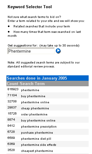 Далее я буду описывать краткий курс для новичков в этой области (мы их еще называем Ньюбами (new boy) - может, и обидное прозвище, но что делать ... так сложилось в нашем круге ) и не для рекламы, а только для того, чтобы мне больше не тратить время на постоянные объяснения многим интересующимся и жаждущим, а просто дать ссылку на эту объяснялку. Кто давно работает в интернете, прекрасно знают, что здесь никто никого не неволит и деньги зарабатываются ни чуть не легче, чем в off – line. А раз так, то всё что будет ниже выложено - не гарантия зарабатывания легких денег, а в лучшем случае достойная (по западным меркам) оплата за ваш труд и усидчивость, ну и всё-таки не шпалы на жд дороге ложить. Значит так – сначала немного пробежимся по Google . Кто не знает, что это за зверь – объясняю – это на сегодня самый мощный поисковик, оперирующий миллиардами страничек. Вот его адрес. Зашли, посмотрели – идем дальше. Ну, про on-line магазины Вы уж наверняка слыхивали … типа там за бугром всё можно купить через интернет. Точно ... так оно и есть. Мало того ... так там еще все магазины под строгим контролем государства, и обман там или недостача исключены. Вот мой знакомый Mauser (вы с ним еще обязательно встретитесь на его форуме), как-то рассказывал, что если клиент в корзину положил, скажем, 100 телевизоров по цене 1 доллар и оплатил (ну ошибка на сайте магаина случилась), так они обязаны ему их и доставить по такой цене. В общем, к вопросу порядочности и обязательств их интернет-магазинов и всяких там аптек и ларьков, мы возвращаться не будем – вопрос и так ясен. Вы, наверное, подумаете, что я сейчас буду объяснять, как нам этот самый магазин создать – нет … нам они интересны в несколько другом разрезе. Так вот, у всяких крупных магазинов (речь во всей статье пойдет только об инет-магазинах) есть немереное количество мелких … своего рода перекупщиков … ну это как у нас к примеру маленький ларек закупает на местной базе, база покупает в Москве, а Москва уже за рубежом. Так же примерно и там … большой магазин, который сам отвечает за доставку товара конечному потребителю, дает Вам на партнерских договоренностях скрипт своего магазина, наполненный его товарами, и Вам остается только повесить его себе на свой домен и нагонять туда посетителей (в дальнейшем мы посетителей будем называть траф … от слова трафик … потоки посетителей другим словом). Но и эти суб–ларьки нас мало интересуют. Нас интересует – где они возьмут посетителей? А вот тут и начинается самое интересное. Давайте для примера возьмем лекарство Phentermine (его американцы страх как любят от ожирения потреблять ) и вобьем его в поисковую строку Гугли… вот так. Гляньте в верхний правый угол выдачи гугли …вы там обнаружите цифру 36,800,000 (цифра зависит с какого ip страны вы смотрите) – это столько документов обнаружила гугля в сети и, как правило, это все странички всяких аптек. Ну а так как известно, что обычный посетитель дальше 5 странички выдачи (выдача – это то, что поисковик выдал на запрос) не идет и естественно делает покупки именно в этих магазинах, то встает очевидный вопрос … а что же другим-то магазинам делать, коль до них покупатель не доходит? Что делать, они прекрасно знают - там они бедолаги живут не первый день и научились выкручиваться … не без нашей помощи, конечно, … но об этом чуть позднее. Посмотрим дальше на это Phente