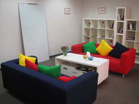 Российское представительство пытается воссоздать эту знаменитую корпоративную Google-атмосферу с широким спектром всевозможных услуг – от бесплатного питания до химчистки и даже автосервиса. У российских гуглеров пока нет всех Google-благ – сейчас они могут похвастать только бесплатным питанием и комнатой отдыха, которая заслуживает отдельного внимания.