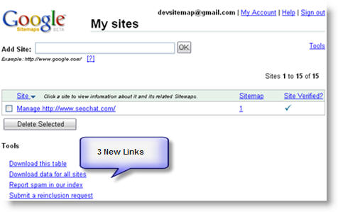 Все ссылки, расположенные ранее вверху страницы, переместились ниже или заняли более подходящие места. Ссылка "Tools" теперь может показаться совершенно ненужной, она лишь отправляет пользователя к ссылкам внизу страницы и, кажется, не работает в браузерах типа Opera. Состав ссылок также немного изменился, некоторые из них стали предоставлять пользователям больше опций для загрузки данных. Ссылки «спам-отчет» и «форма для запроса на повторное включение» теперь расположены в секции Tools, что представляется более удобным, т.к. их не нужно искать по всей странице.