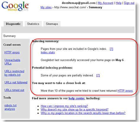 На скриншоте показана закладка Diagnostic, данная страница представляет базовые данные, серьезные ошибки, а также валидатор robots.txt. Закладки Statistics и Sitemaps остались прежними. В Indexing summary можно найти информацию о том, находится ли сайт в индексе поисковой системы, когда робот обходил его в последний раз. Это полезная информация, однако, не менее важно было бы знать, когда будет следующее обновление индекса. Такие данные могли бы помочь веб-мастерам в оценке значимости сайта для поискового алгоритма. В разделе Potential indexing problems сообщается о наличии возможных проблем, связанных с индексацией сайта, например, сайт проиндексирован частично. Более подробные комментарии можно получить, если кликнуть на знак вопроса. Здесь же, благодаря работе уведомителя об ошибке (error notifier), можно найти информацию о количестве и типе найденных на сайте ошибок. Чуть ниже Google предлагает услуги нового центра помощи (help center).