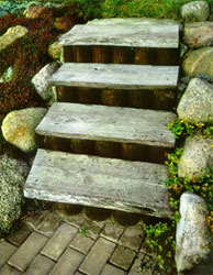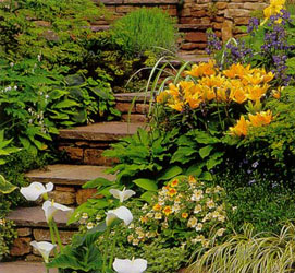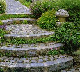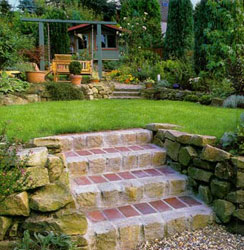 Во многих садах есть хотя бы одно место, где бывает нужно спуститься или подняться с одного уровня на другой. Двух ступеней будет достаточно для перехода к другой части сада, для "возвышенного доступа" к беседке, скамье или садовой скульптуре. Если дом или внутренний дворик находятся на разных уровнях - вам тоже потребуются ступеньки.