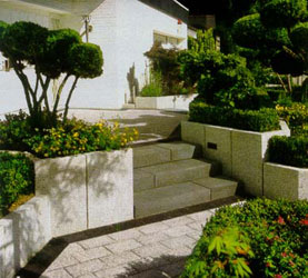 Материалы для лестниц выбираются самые разнообразные: натуральный камень, кирпич, бетонные блоки или монолитный бетон, дерево. Или комбинация этих материалов. Но определяющим фактором должен служить общий стиль дома или сада. Широкая гранитная лестница, ведущая к скромному деревянному дому выглядит, мягко говоря, нелепо, равно как и деревянная лесенка в саду регулярного стиля с роскошным отделанным мрамором особняком. Для романтического сада хорошо подойдут плиты из натурального камня, клинкер или дерево, особенно если тем же материалом покрыты дорожки и площадки для отдыха. Обычно из плит делают только лицевую поверхность ступени, а ее основание изготавливают из бетона. Дерево должно быть непременно пропитано антисептиком. Эффект естественности подчеркивает боковое смещение ступеней относительно друг друга. Клинкер, кстати, подойдет к классическому строгому саду с кирпичным коттеджем. Тем, кто предпочитает современный дизайн, советуем выбрать бетон: искусственные бетонные плиты сейчас выпускают самых разных расцветок.