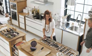 В-третьих, все кухонное пространство должно быть устроено так, чтобы место использовалось максимально эффективно. Не скупитесь и потратьте несколько часов на планирование кухни. Если вы не уверены в собственных силах - обратитесь в один из больших магазинов мебели - очень часто там есть толковые консультанты, готовые предложить несколько вариантов планировки. Причём эта услуга бесплатна. Вот несколько моментов, на которые обязательно обратят ваше внимание: