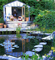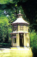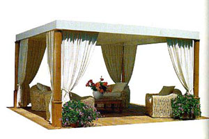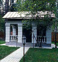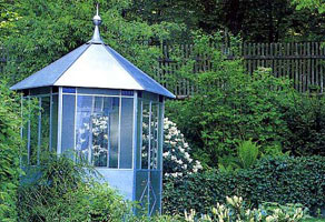 Садовый же павильон - это в принципе симбиоз открытой беседки и небольшого садового домика, как правило, застекленный. Его форма - округлая, шести- или восьмигранная - всегда строго геометрична. Павильон может выглядеть также как крыша на четырех или более опорах, без всяких ограждений по периметру.