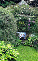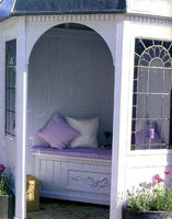 Беседка придает саду завершенный вид. Хорошо защищенные от остального мира, вы можете в любое время любоваться отсюда своим зеленым царством. Вряд ли найдется человек, которому не хотелось бы иметь в своем саду надежно защищенный от палящего солнца и холодного ветра, но одновременно окруженный свежей зеленью и благоухающими розами уголок, где можно было бы без помех почитать, помечтать о сокровенном или просто посидеть с друзьями за чашкой чая.