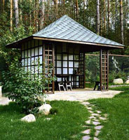 Выбор моделей чрезвычайно велик. Павильоны и беседки сооружают из дерева и кованого металла, камня и кирпича. Они бывают круглыми, шести- восьмигранными и даже овальными, открытыми ажурными и закрытыми, романтически изящными, бесхитростно простыми или, наоборот, супермодными. В стиле деревенского домика, или причудливых очертаний, словно терема из русских сказок, китайские пагоды, японские чайные домики. Так что для каждого стиля оформления сада найдется подходящая модель. Дизайн и стоимость на любой вкус и кошелек.