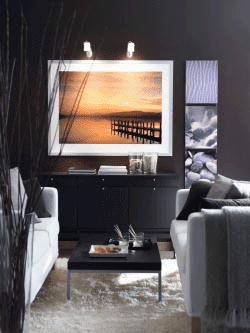 Для фото и картин значительную роль играют правильно подобранные рамки. Лучше, если они будут незаметными и одинаковыми. Еще один вариант размещения изображений: повесить их на магнитный держатель для ножей.