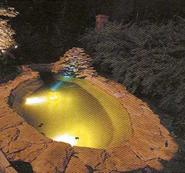 Наиболее сложный, налагающий определенные технические требования, но в то же время благодарный прием, позволяющий при правильном подходе достичь удивительных эффектов. Здесь первостепенное требование - питание осветительных приборов должно быть от напряжения не выше 12 В. Этому условию отвечают герметичные светодиодные и галогенные (металлогалогенные) светильники. Ну и, разумеется, гибкие волоконные светодиоды, в принципе снимающие вопрос контакта токоведущих частей с водой.