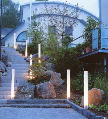 Призвано не освещать, а обозначать. Этот прием используется для получения того или иного визуального эффекта: создания светового контура, выделения границы пешеходных и автомобильных дорожек или обозначения направления движения. Выбор средств для этих целей огромен. Это могут быть полуметровые столбики-«болларды», оптоволоконное перевернутое «звездное небо», светящаяся брусчатка-« рик» и т.д. Общее требование для таких осветительных приборов – высокая степень защищенности от механических воздействий. Например, ударопрочное стекло светящейся брусчатки выдерживает вес до 2000 кг.