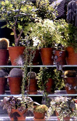 Естественно, нельзя пренебрегать и ихспецифическими особенностями. В прихожей, скажем, гденет прямого света, подойдут пучки сухих цветов, замысловатоизогнутые ветки. На кухне, где влажность и температураочень часто завышены, далеко не всегда удается выращиватьжеланные экземпляры. Что ж, тогда приходится миритьсяс содержанием их на наружном подоконнике. В спальне,детской, рабочем помещении можно себе позволить свободныйвыбор того, что более всего нравится. По общепринятымпонятиям, цветы особенно желанны в гостиной,"представительном" помещении. Великолепныецветочные композиции можно создать в нише стены, выступе,изломе, используя конструктивные элементы, которые визобилии предлагает традиционное монолитное строительство.Отнесем сюда же колонны, балки, скосы. Эти весьма нежелательныеи неприятные для глаза изъяны становятся неузнаваемымии весьма привлекательными, если подвести к ним ползучие,вьющиеся растения, лианы. В слабо освещенных холлах,в нишах коридоров и в комнатах психологической разгрузкирационально создание мини-климатронов - поместите сюдаредкие миниатюрные кактусы или влаголюбивые тропическиерастения, организованные в композицию "уголок тропическоголеса" или коллекцию эффектно цветущих узамбарских фиалок.