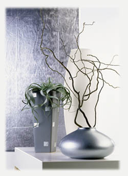 К прямым и элегантно изогнутым формаммебели из стали, стекла, мрамора и лакированного дереваподойдут либо растения ясных и отчетливых форм: сансевиериятрехполосая, монстера привлекательная, драцена и гусмания- или же для резкой контрастности растения, чей обликпривлекает легкостью и непринужденностью: папоротникис перистыми листьями, розовая азалия.